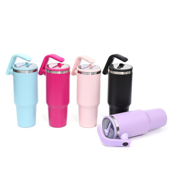 30オンスハンドルなし旅行断熱保冷ドリンクパウダーコーティング二重壁コーヒータンブラーストロー付き
